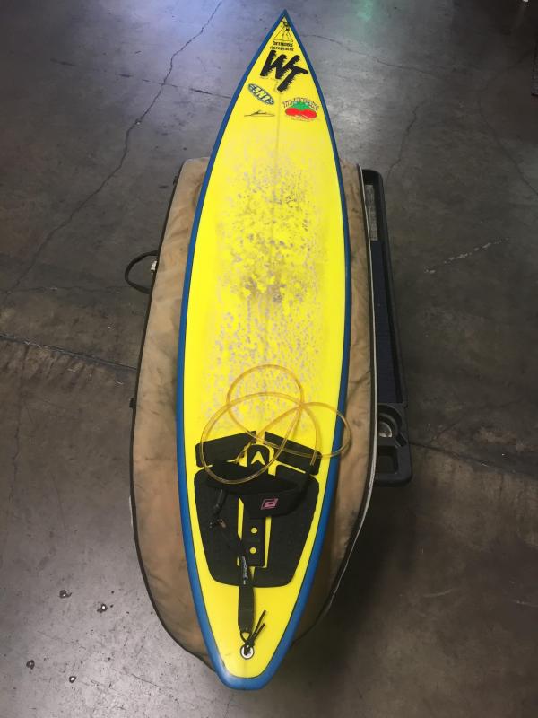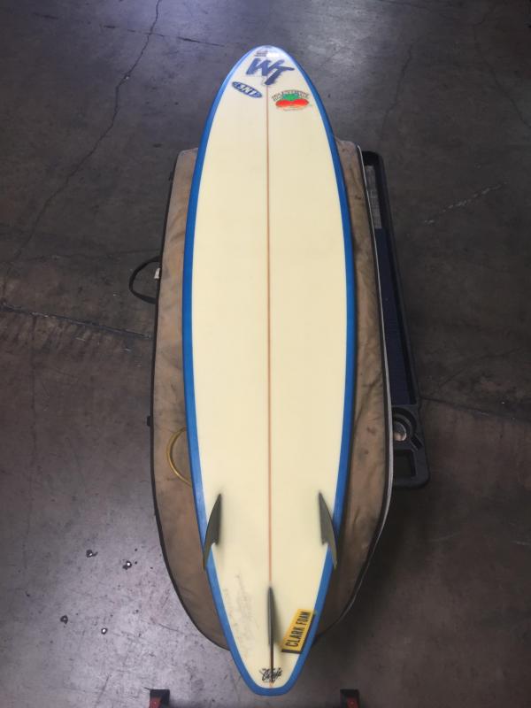 Wave Tools, mid length semi gun, Clark Foam Blank, 8oz glass, .25" Spruce stringer. Great board for double overhead surf. Very clean no dings, like new, ridden only a few times in certain conditions in Hawaii & Mainland Mexico...