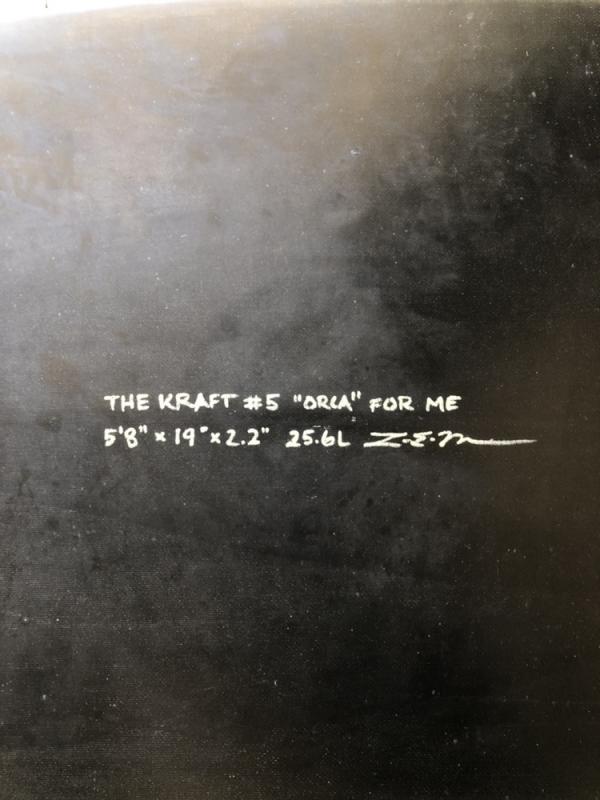 The Kraft Orca model 5–fin futures set up, epoxy used shortboard. No open dings. The board is super light and great for grovel. Ocean & earth traction pad.